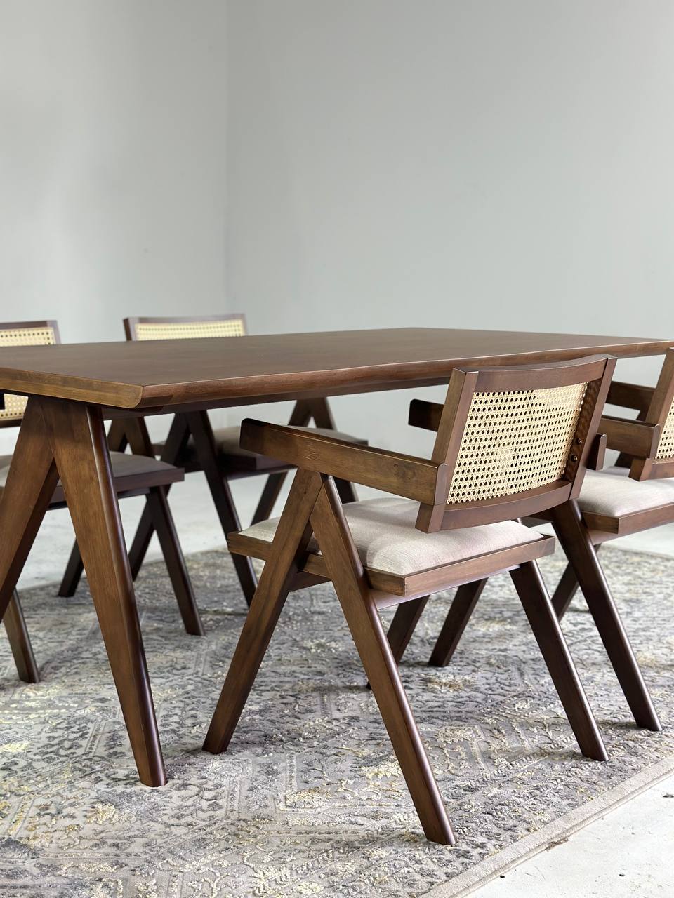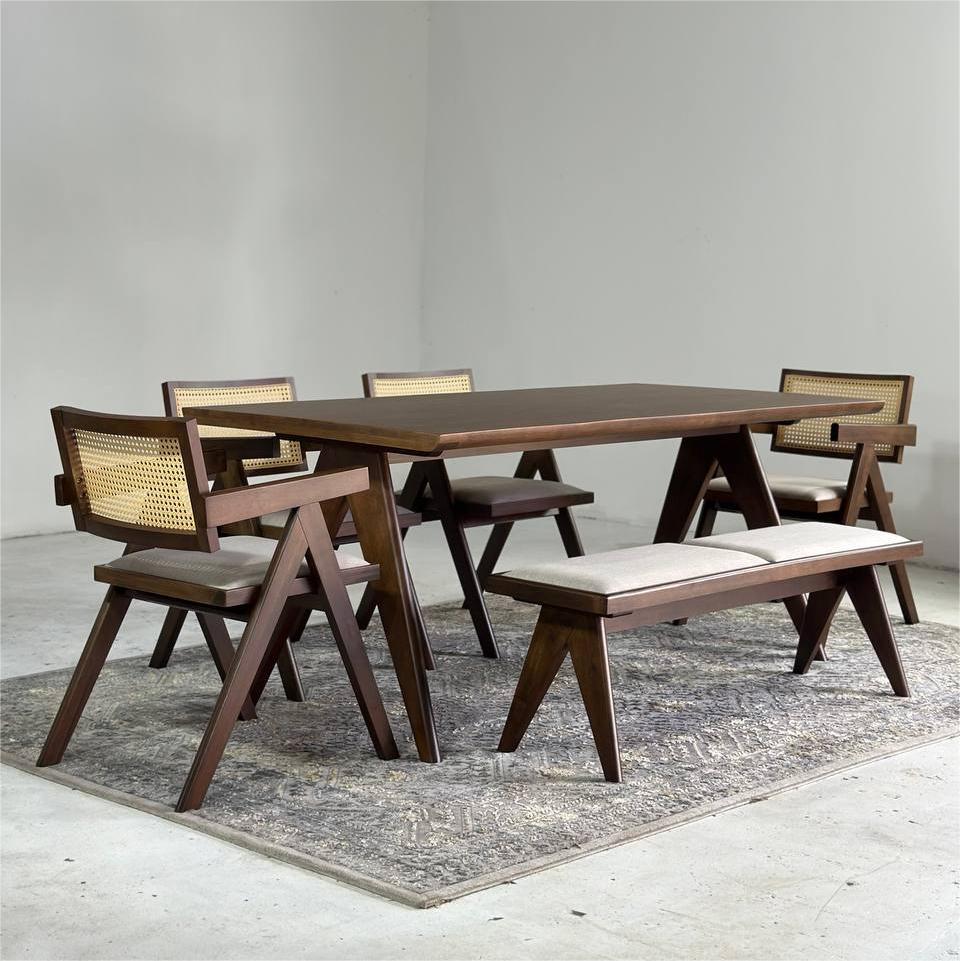 Eleanor 1.8m Dining Table with 4 Eleanor Chairs + 1.3m Eleanor Bench in Medium Brown (Set)