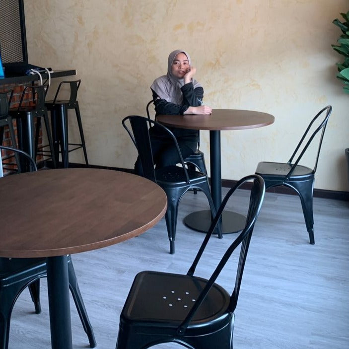 Round Solid Wood Cafe Table in Walnut Color (plate metal leg)